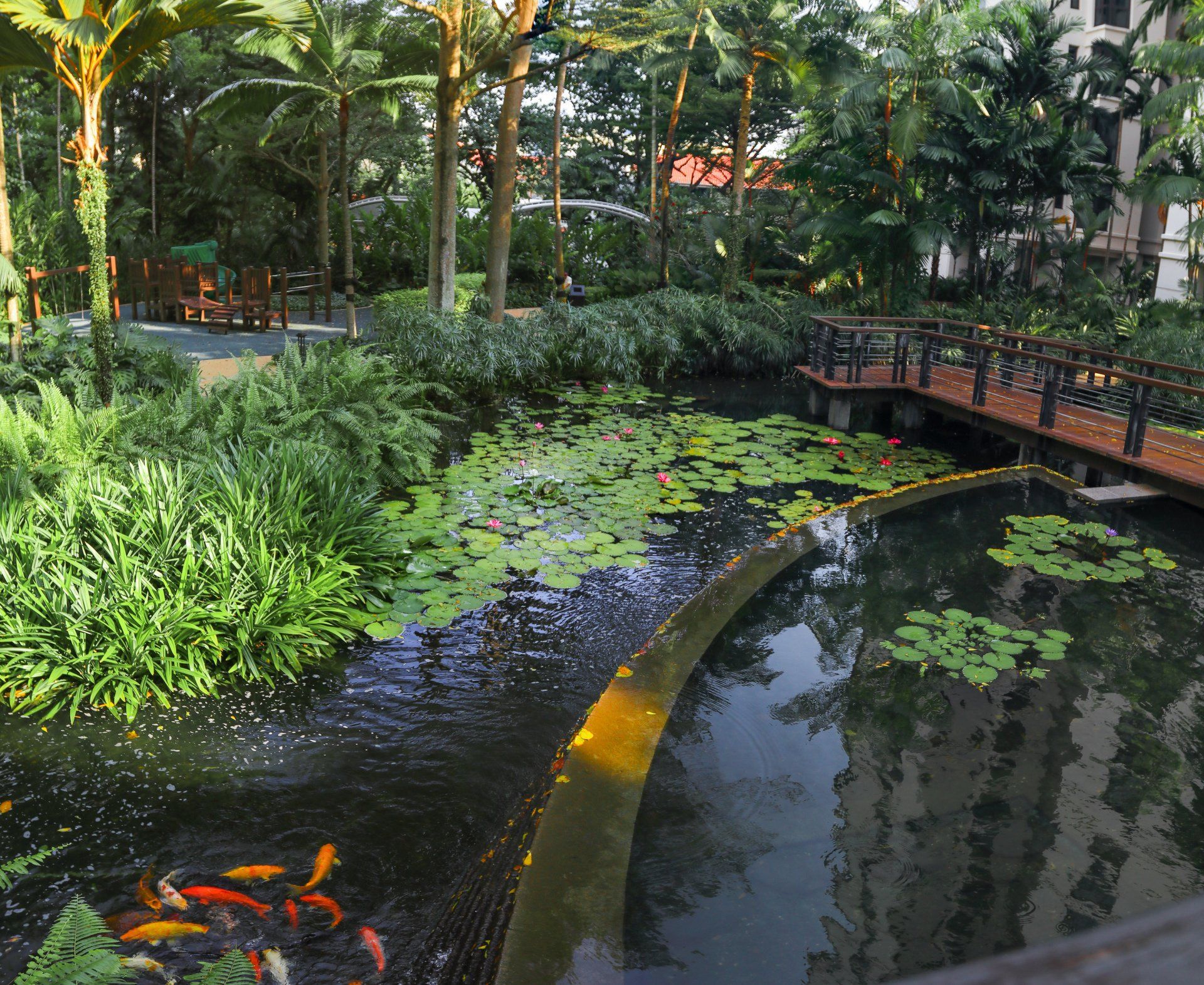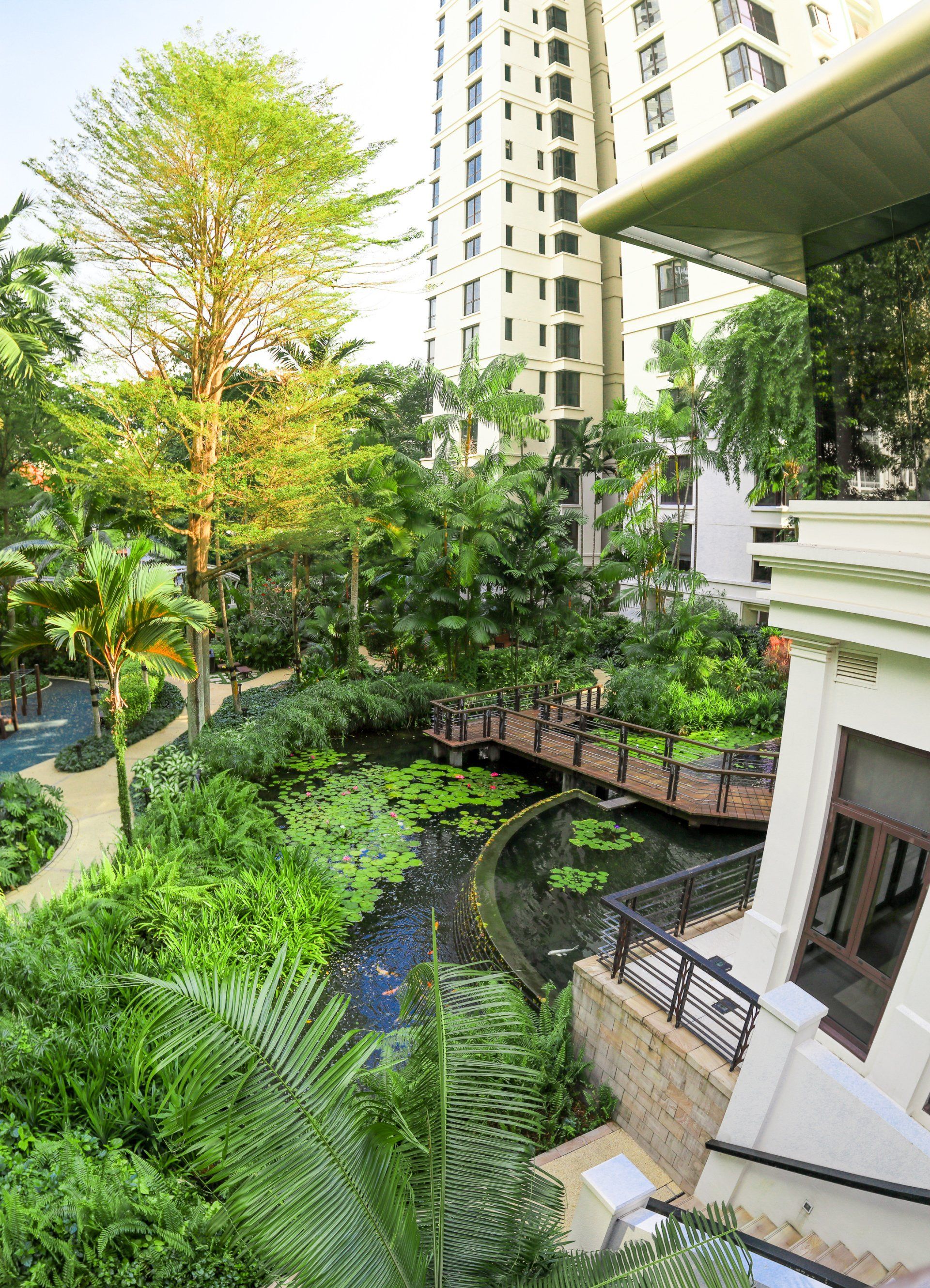 The entire premier estate is flanked by statuesque palms and other matured trees. Its Lily Pond offers a resort-like experience as residents stroll through the timber walkway in the morning to see the blooms. To harmonize this integration has been increasingly difficult as the landscape on the estate matures and requires concerted efforts to maintain.