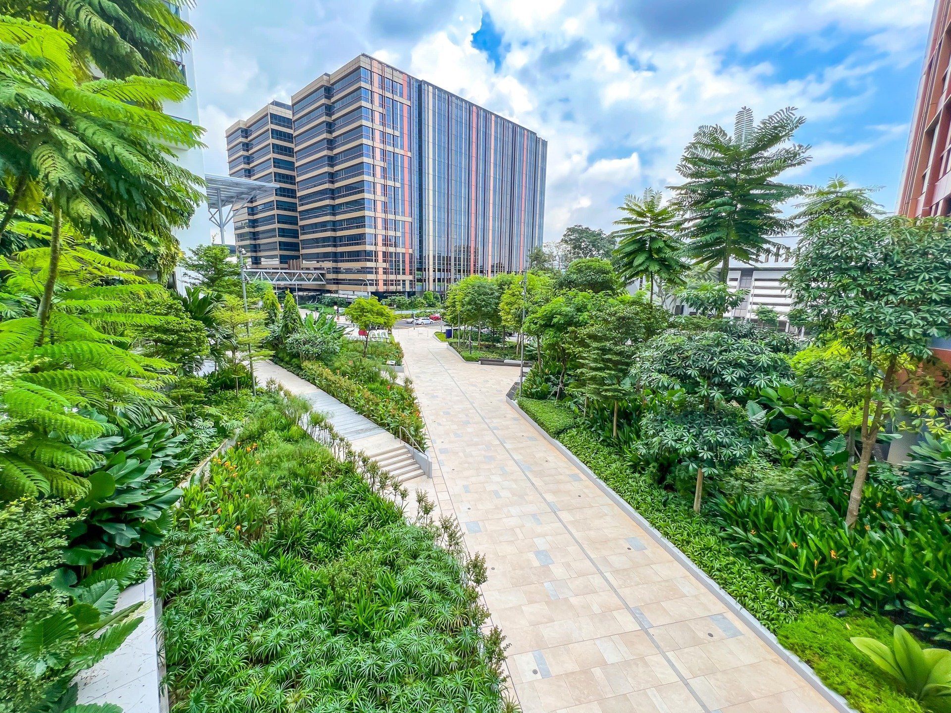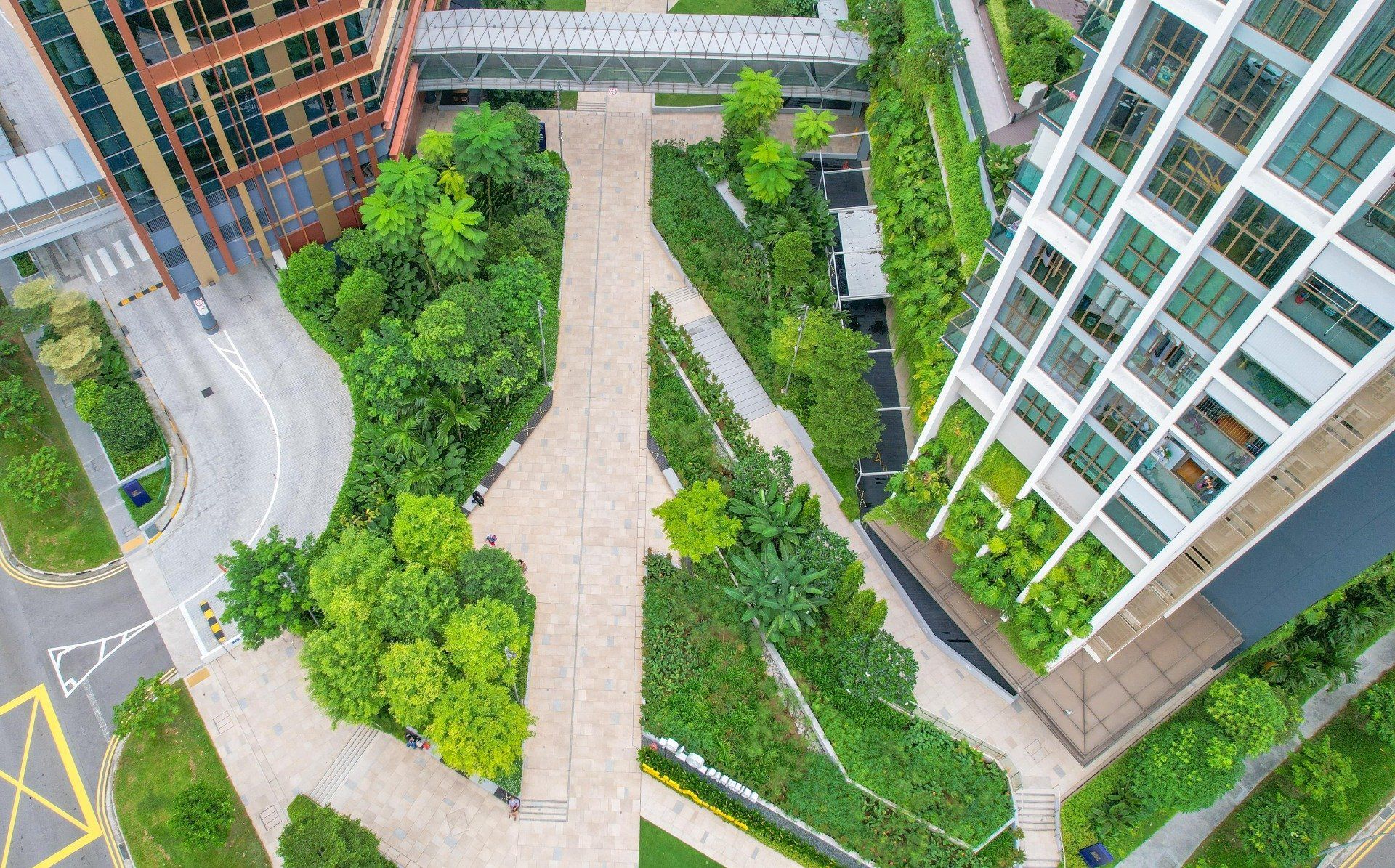 Spaces are built between green public nature to allow more flexibility and movement such as jogging and cycling. It focuses on integrating lush landscaping into all aspects of the buildings such as the perimeter and pathways.